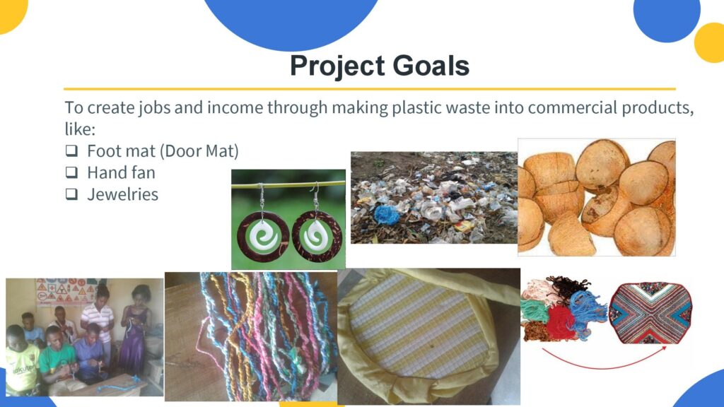 - Role Description: Responsible for developing and delivering the training program on waste management, recycling processes, and creating reusable products. She also ensures the training is effective and equips locals with the skills necessary to participate in the project.